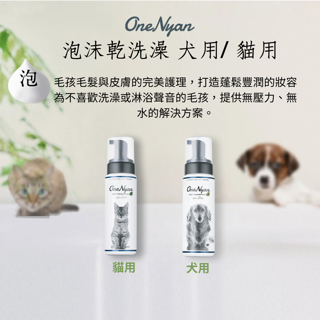 | 1. | OneNyan 乾洗泡泡 (犬用或貓用) | 快速清潔、去除異味、局部髒污處理。特別適用於不便洗澡、老年/幼年、或換季保潔。 | 請依您需求選擇:貓/狗 |